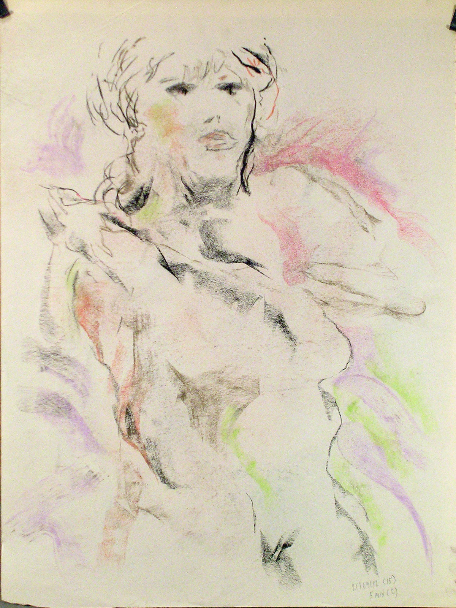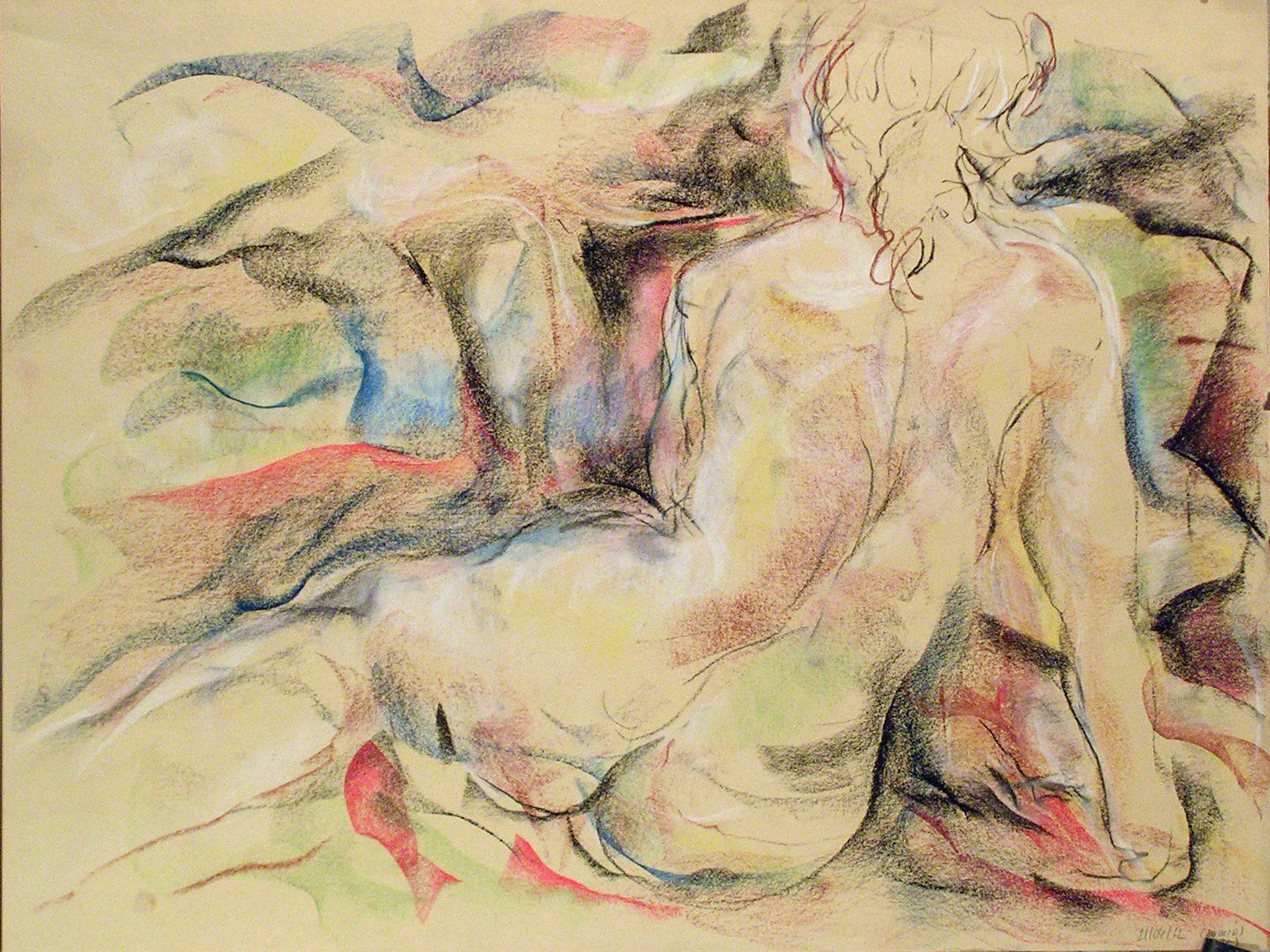 And the second one is a mixed media painting, started from pasting a nude sketch, and a print from an ink jet printer, covered with layer of acrylic paint, and ink and on top of it some dry pastels, a bit of everything, it was done in 2005, quite a long time ago….