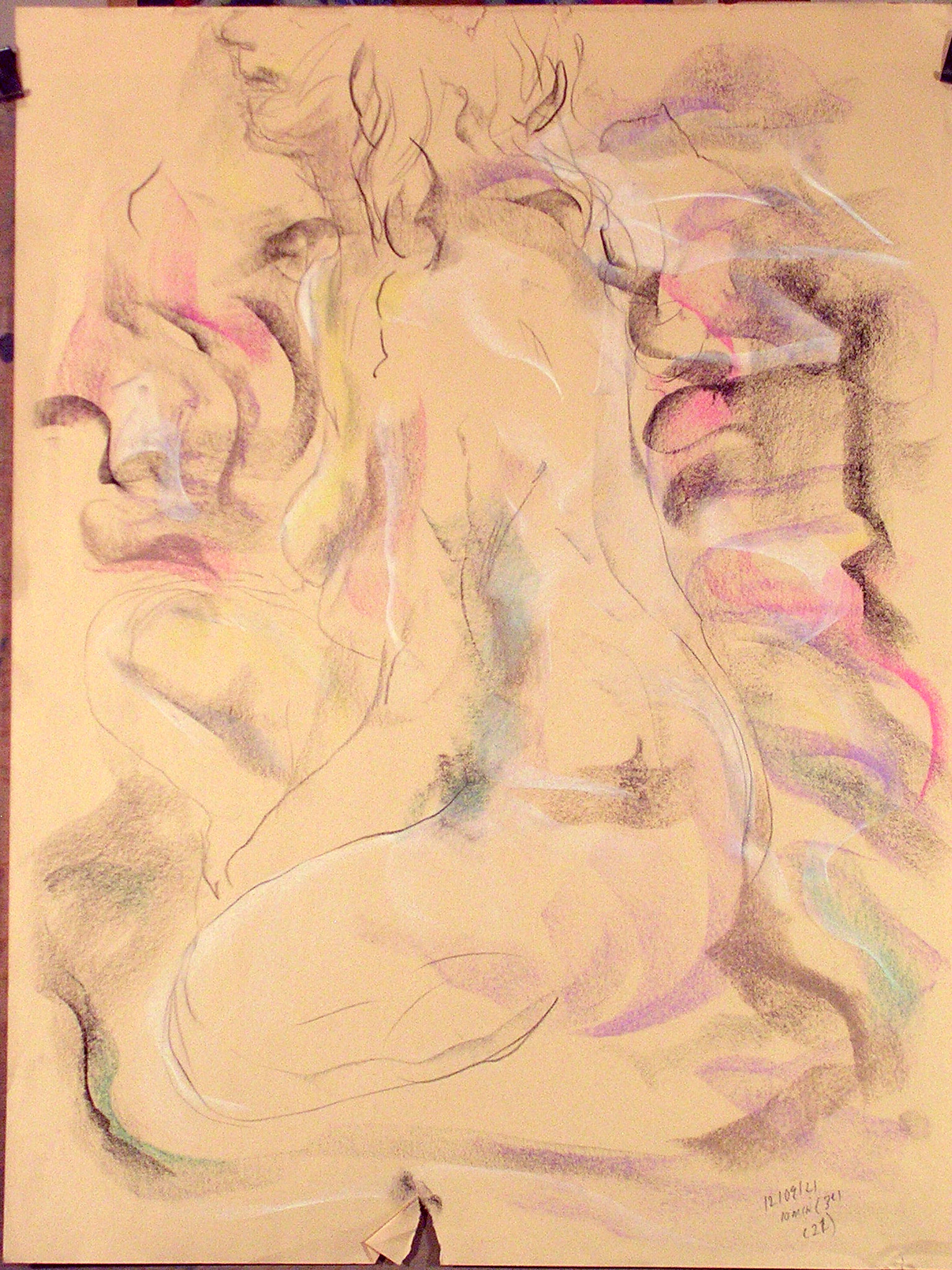 I’m kind in a rot these days….not much into painting, drawing or blogging as a matter of fact, time to get my a…..off the coach, oops just realised sofa is couch in english…should have looked to google translater…, stopping to be a potato…so here’s a few pic of the october 12 th life drawing session, yes I’m two weeks late now…so as soon as I can move this body part, you know where the back is not anymore your back…then I should be able to post more things, other sketches, pastels, paintings and so on…